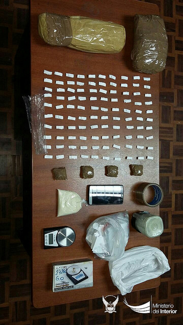 Con esta información, los agentes policiales acudieron al sector e identificaron al sospechoso. Posterior le realizaron un registro que posibilitó la aprehensión de 1 kilo de base de cocaína y 495 gramos de marihuana que se encontraban en paquetes embalados con cinta adhesiva color café y envolturas de papel cuaderno, junto a una balanza.