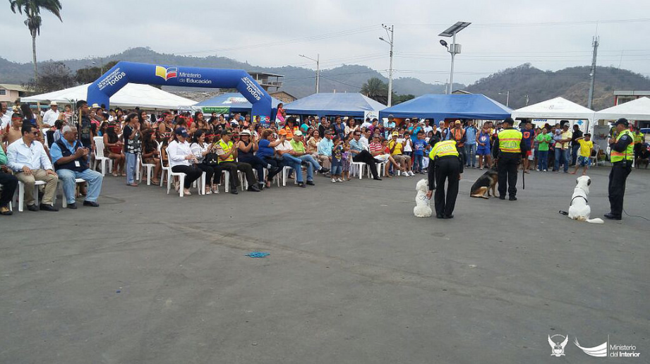 La actividad, que fue presenciada por alrededor de 400 personas, contó con la presencia de Susana Dueñas, secretaria de Gestión de Riesgos; Alejandro Zambrano, vicealcalde del cantón; el jefe político, el jefe policial del distrito e invitados especiales.