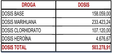 503.278 dosis de sustancias sujetas a fiscalización fueron eliminadas del mercado, esta semana