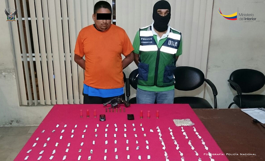 Cristhian Carlos CH.C., de 21 años de edad, fue detenido y puesto a órdenes de las autoridades. En la audiencia de flagrancia, el Juez dictó la prisión preventiva para el procesado, por el presunto delito de tráfico ilícito de sustancias sujetas a fiscalización y dispuso su traslado hacia el Centro de Privación de Personas Adultas en Conflicto con la Ley El Rodeo de Portoviejo. En esta operación policial se aprehendió 364 gr de marihuana y 405 gr de cocaína.