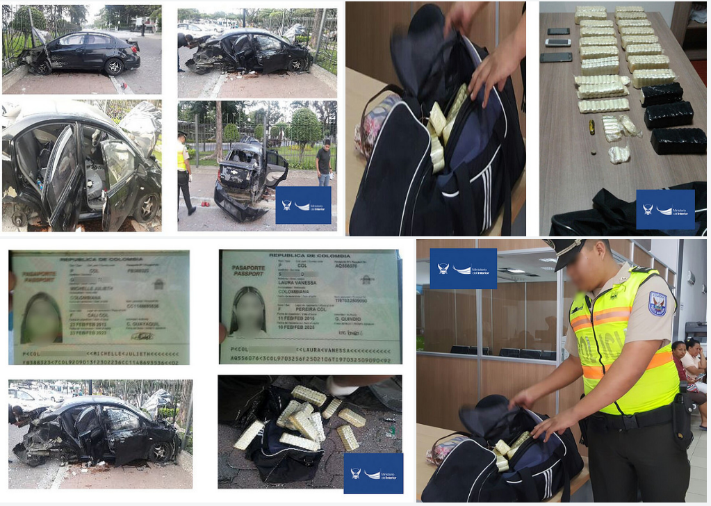 Mientras las jóvenes eran trasladadas hasta la Clínica Alborada para recibir atención médica por sus heridas leves, con custodia de uniformados de la institución, se halló en el maletero del vehículo Chevrolet Sail, de placas GSC9452, color negro, un bolso que contenía 800 cápsulas de heroína. El caso pasó de ser un accidente de tránsito a un delito por tráfico de drogas.