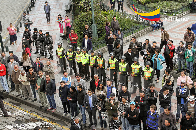 El coronel Marcelo Tobar, jefe de la Subzona Azuay, indicó que se ubicó a miembros de la Policía a lo largo de la calle Simón Bolívar, por donde recorrió la marcha, adicionalmente se resguardaron los edificios de las entidades públicas ante cualquier eventualidad.