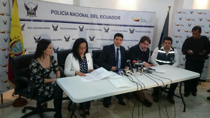 En rueda de prensa, el coronel Carlos Alulema, director Nacional de la Policía Judicial, acompañado de Alejandra Sigcha, directora Jurídica del Instituto Nacional de Patrimonio, Joaquín Moscoso, subsecretario de Patrimonio del Ministerio de Cultura y Tania Moreno, Fiscal Provincial de Pichincha, brindaron detalles del operativo efectuado en las dos ciudades.