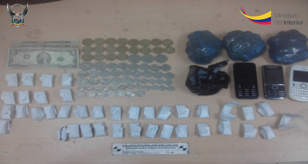 Los aprehendidos son Jefferson José J.G., Christian Andrés J.G., Roberto Carlos J. G., Roy Omar P.V. y Julio Alfredo A.B., éste último figurando como líder y propietario del inmueble allanado. En el lugar se encontró 352 gramos de marihuana, 2 gramos de cocaína, 59 dólares en distintas denominaciones y tres teléfonos celulares.