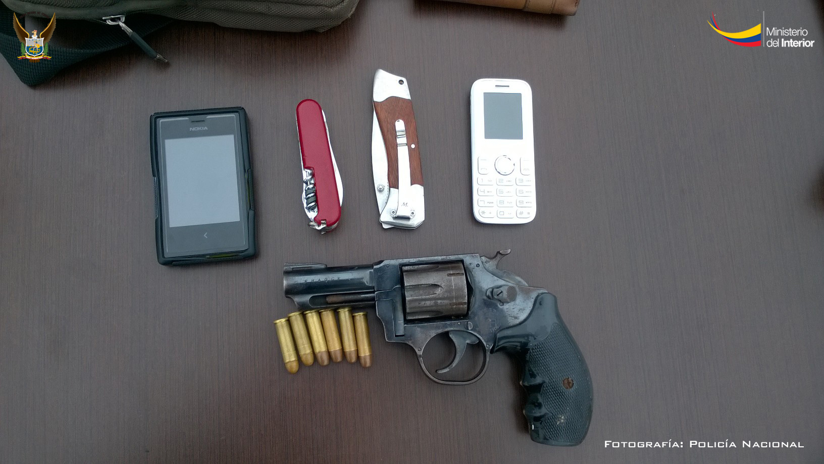 Al realizar el registro minucioso del vehículo, los miembros policiales del Circuito Nuevo Portoviejo encontraron un arma de fuego calibre 38, de fabricación nacional y seis municiones sin percutir, objeto contundente que estaba en la cajuela de una mochila.