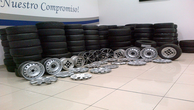 150 llantas, 11 aros y 14 tapacubos de diferentes marcas y modelos de vehículos fueron finalmente trasladados hasta el Centro de Acopio de Indicios y Evidencias de la Policía Judicial de la Zona 09, DMQ. / Redacción Quito.