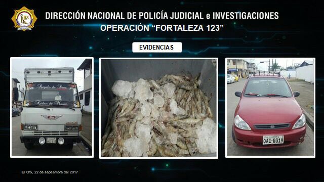Pasaje. Seis ciudadanos detenidos, uno con antecedentes penales; y un menor de 14 años aislado, durante el operativo Fortaleza 123, ejecutado por agentes de la Policía Judicial de El Oro. Los indicios incautados fueron un vehículo, un camión tipo furgón y mil libras de camarón.