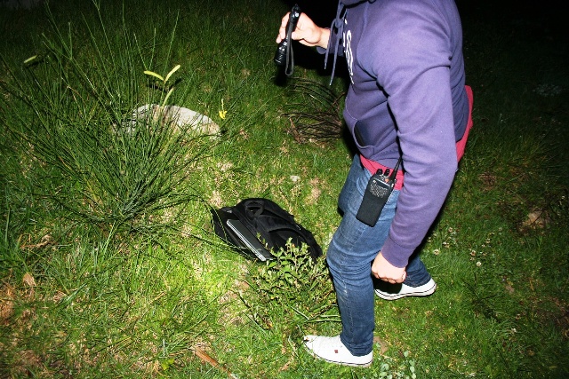 Un policía encontró la mochila que fue lanzada por un delincuente cuando intentó escapar.