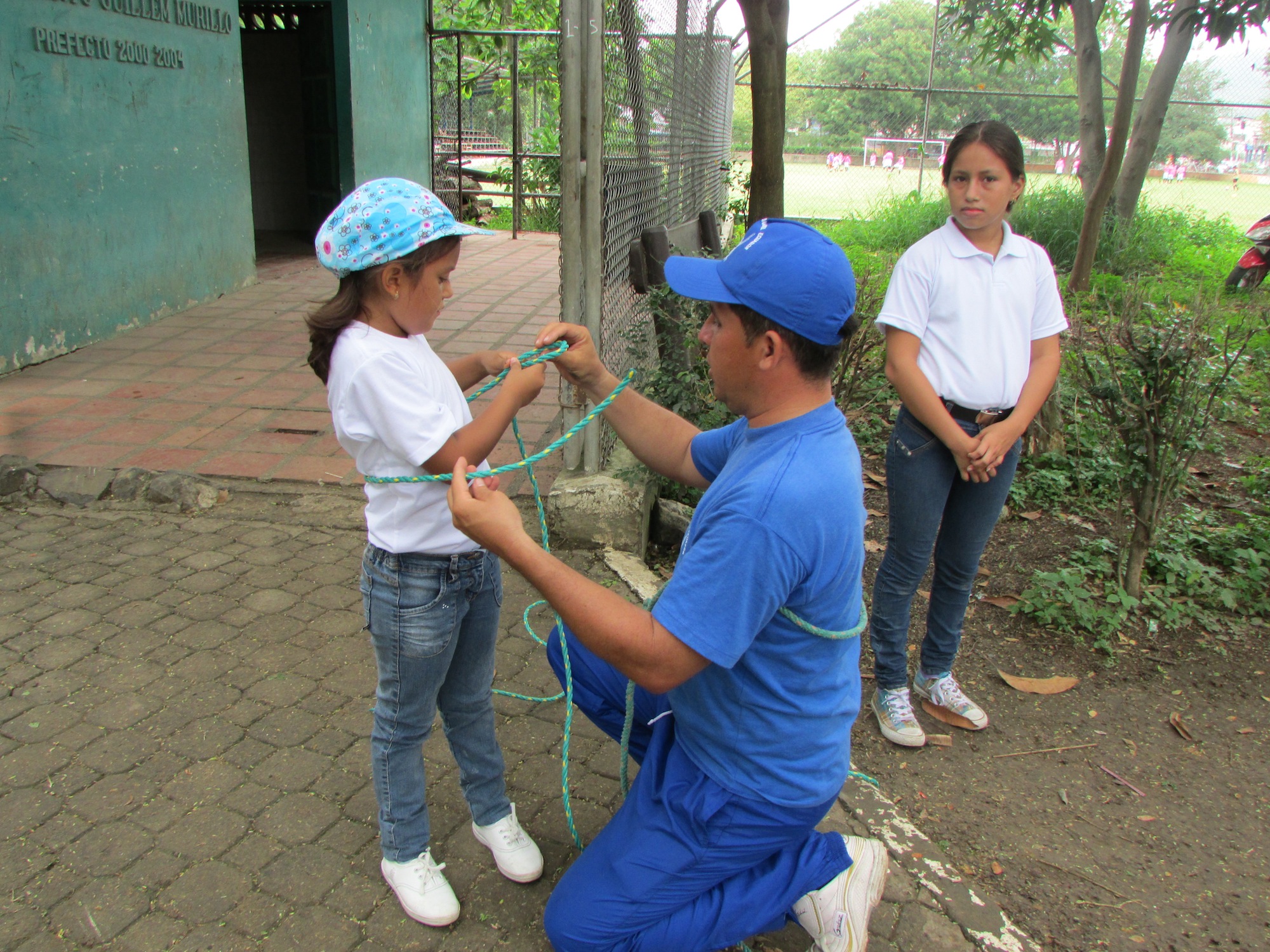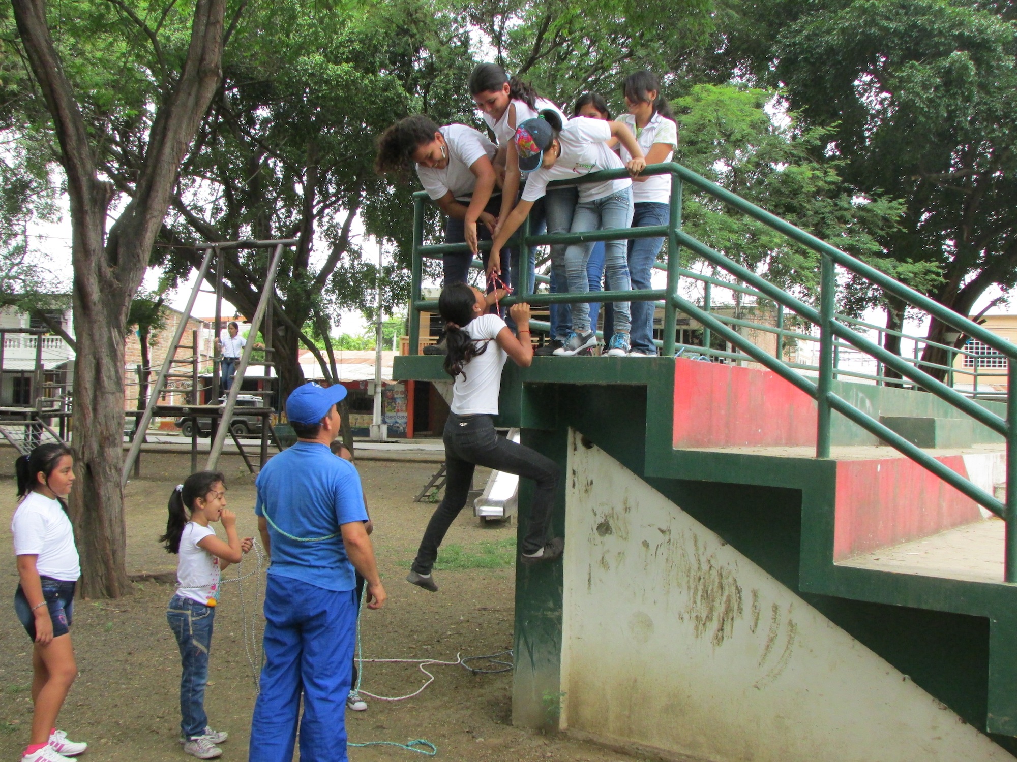 - Integrantes del curso vacacional poniendo en practica el nudo de rescate