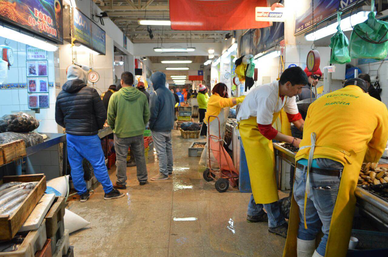 La madrugada del sábado, la delegación visitó el centro de comercialización de pescado y mariscos más grande de Chile, ubicada al noroccidente de Santiago. A partir de las 22h00 llegan camiones grandes y pequeños al centro de acopio, aproximadamente a las 02h00 la primera parte del proceso termina.