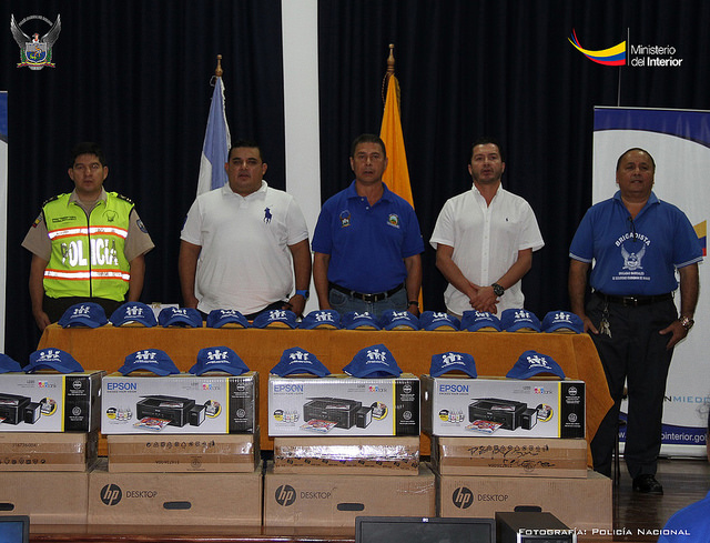 Manta. El Ministerio del Interior y la Policía Nacional hicieron la entrega de mil uniformes y 10 computadoras e impresoras a los brigadistas comunitarios de seguridad ciudadana, de 10 provincias del país. El evento se realizó este sábado 17 de octubre, a las 10h30, en el auditorio del Patronato Municipal de Manta, con la presencia de 300 brigadistas.