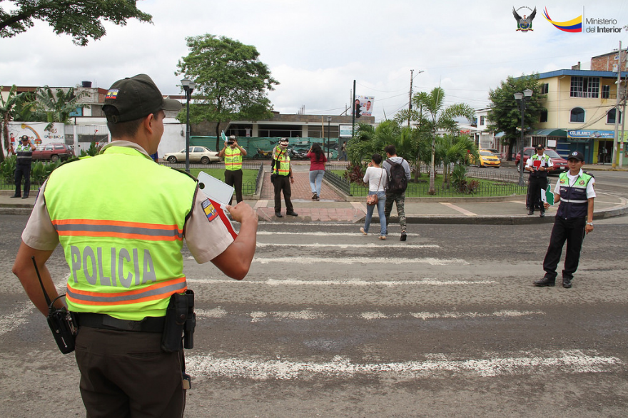 Elementos de la Policía Nacional y de la Comisión de Tránsito del Ecuador (CTE) se ubican al costado de un paso cebra. Ellos les facilitan a los ciudadanos la señal de una mano verde con el pulgar hacia arriba. Al pasar la calle, los peatones se la muestran a los conductores, indicación de que están actuando bien; mientras que a los choferes que estacionan su vehículo sobre el paso cebra, les muestran una mano roja con el pulgar hacia abaj, en rechazo de su acción.