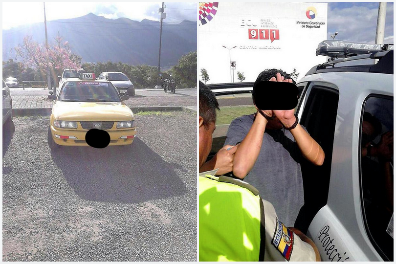 Minutos después del ilícito, los gendarmes lograron interceptar un taxi Nissan Sentra de placas PUK 0163, en el que se trasladaban los presuntos antisociales.