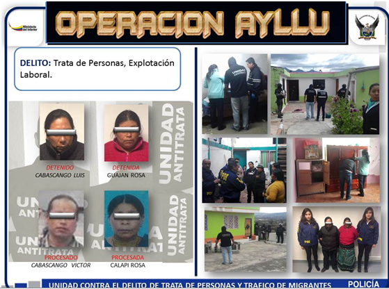 De acuerdo a las indagaciones realizadas por la Policía Nacional, en coordinación con la Policía de Investigaciones de Chile (PDI), se identificó que en la provincia de Imbabura estaba operando una organización delictiva dedicada a la trata de personas con la finalidad de explotación laboral en Chile.