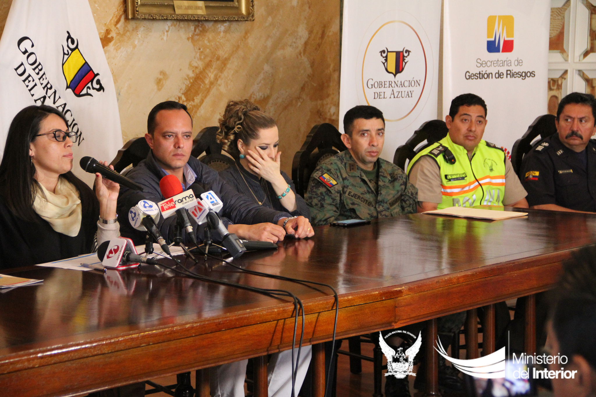 La mañana de este jueves 23 de febrero se anunció el dispositivo de seguridad que se desplegará durante el feriado, mediante rueda de prensa efectuada en el salón de Próceres de la Gobernación del Azuay y presidida por María Augusta Muñoz, gobernadora de la provincia.