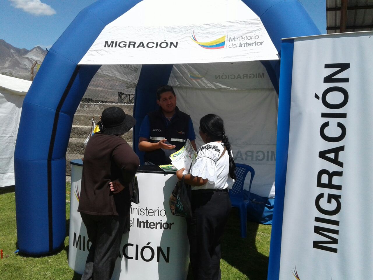 Por su parte, Patricia Chiluisa consultó al personal del stand de Migración sobre una prohibición de salida del país. Tras recibir una asesoría, la usuaria indicó “está muy bien que se informe al pueblo sobre estas cosas, uno desconoce y es difícil viajar a Quito. Los jóvenes me ayudaron y ahora ya sé qué papeles necesito para mi trámite”.