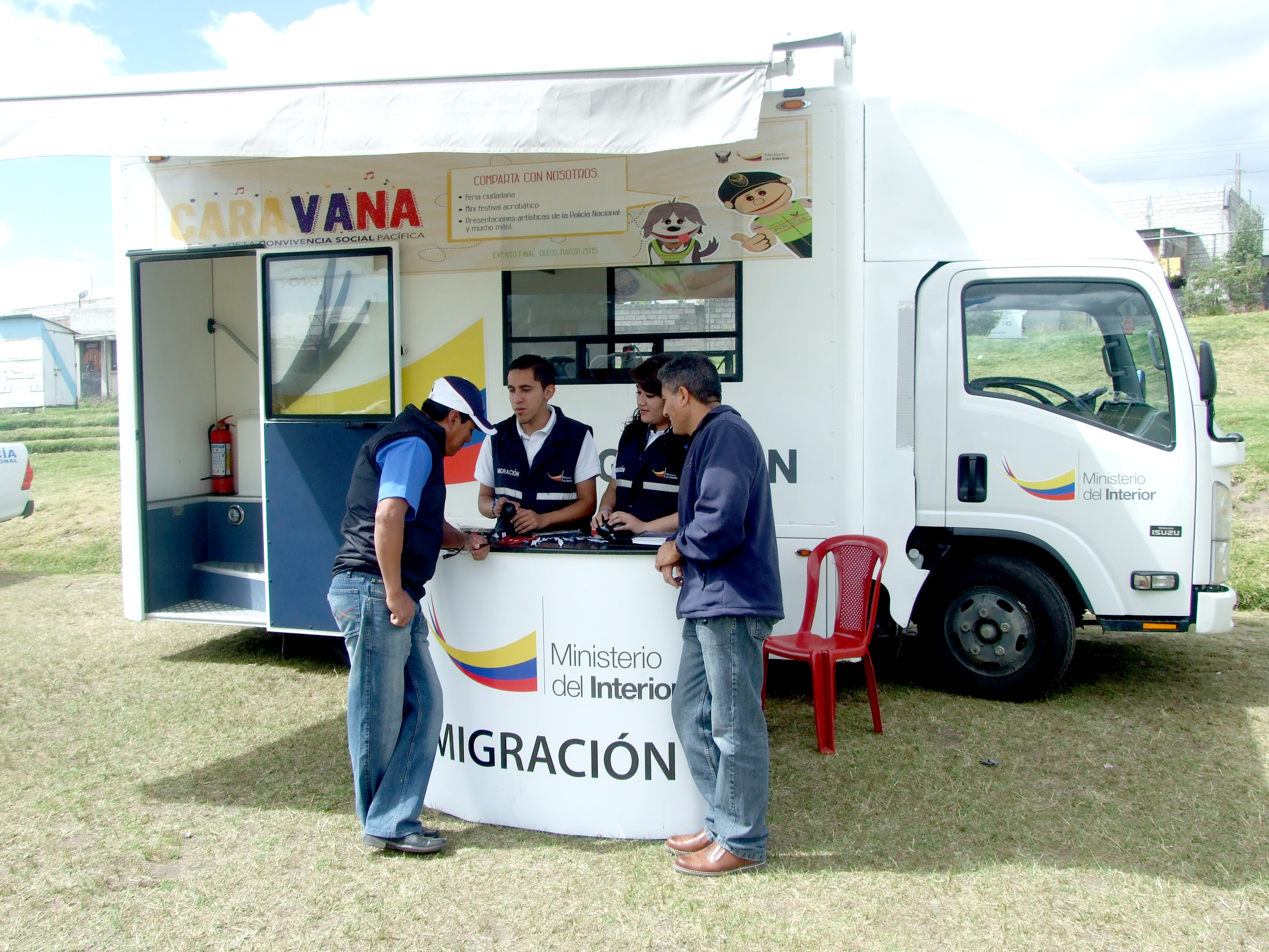 Quito. El Proyecto de Fortalecimiento Institucional de las unidades de Control Migratorio (Pfiucm) participó en la feria de seguridad, organizada por la Policía Nacional del Ecuador. Este evento tuvo como finalidad dar a conocer a la ciudadanía del sur de Quito, sobre los servicios que brindan las diferentes dependencias del Ministerio del Interior.