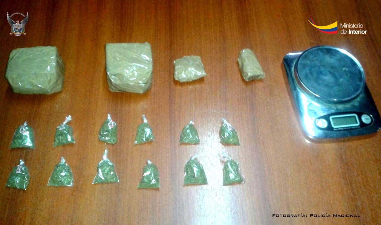 La Policía Nacional, a través de la Jefatura Antinarcóticos de Manabí, decomisó 497 gramos de marihuana, y se evitó el consumo de 1.988 dosis de droga para el consumo interno.