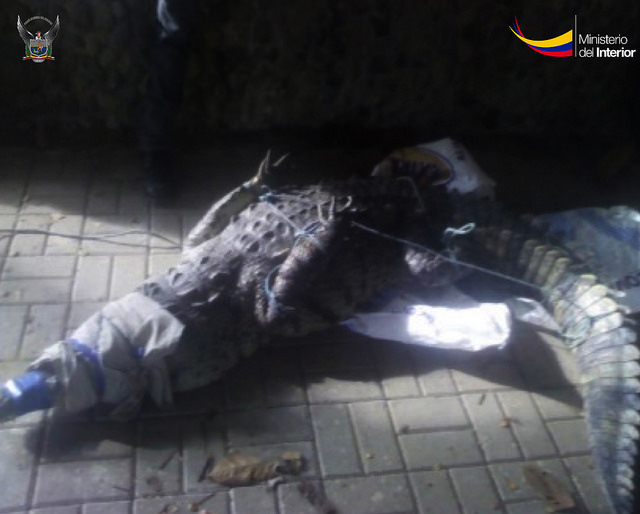 El cabo Jonathan Rodríguez, funcionario de la UPMA acudió al lugar en compañía de delegados del Ministerio del Ambiente para recuperar al animal, de aproximadamente 2.60 metros de largo. Fue inmovilizado y posteriormente trasladado hasta la Reserva Manglares Churute, donde el veterinario del lugar, tras revisarlo, consideró que se encontraba en buenas condiciones. En los próximos días será reinsertado a su hábitat natural.