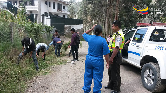El pasado fin de semana, los miembros de la Unidad de Policía Comunitaria (UPC) de Sayausí, de la Policía Comunitaria, estudiantes del colegio Javeriano, moradores y directivos de la parroquia, desarrollaron una minga cuyo objetivo fue recuperar los espacios verdes, así como otros lugares.
