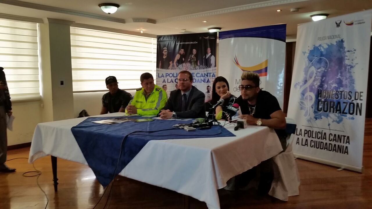 Quito. Con una rueda de prensa que contó con la participación de Sergio Correa, asesor del Ministerio del Interior; general Ramiro Mantilla, director General de Personal de la Policía Nacional, Rudy Rodríguez, actriz venezolana y Makano, cantante panameño; el Ministerio del Interior y la Policía Nacional hicieron la invitación a toda la ciudadanía de Quito, al concierto de lanzamiento del CD ‘Honestos de Corazón’.