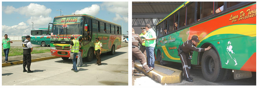 Además de revisar los neumáticos de los vehículos pesados que parten a diferentes destinos de la Costa y la Sierra, se somete a pruebas de alcoholemia a los conductores y se controla el cobro correcto de las tarifas de los pasajes.