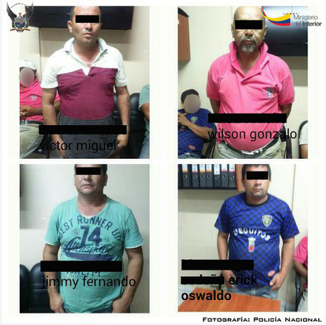 En el sitio fueron detenidos Wilson Gonzalo V.C., (propietario del taller), quien registra una detención anterior por presunción legal; Erick Oswaldo M.C., (ayudante en el taller); Víctor Miguel B.M., (mecánico); y Yime Fernando G.T., (presunto propietario del automotor que era pintado).