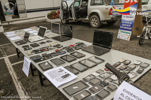 Con el debido permiso para el allanamiento, inspeccionan todos los artefactos y solicitan las facturas o documentos que garanticen que dichos objetos tienen su dueño. Este proceso lo realizaron en seis locales en Cuenca y en Paute, donde decomisaron 60 celulares, 53 bases de radio de vehículos, 26 televisores, 32 DVD, 10 tabletas, ocho CPU, 20 filmadoras, entre otros objetos.