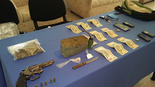 Babahoyo. 650 gramos de marihuana, un arma de fuego, 374 dólares y siete personas que se movilizaban al interior de un auto de color vino, fueron capturadas en el centro de Babahoyo, por la Unidad de Antinarcóticos de la Policía Nacional.