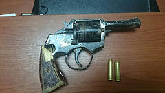 En otro caso, en la Mz. 28 del Bloque 1 de la avenida Abdón Calderón, se retuvo a un joven de 17 años de edad por portar un arma de fuego. El muchacho fue visto por los policías en actitud sospechosa, observando en diferentes direcciones e intentando salir a carrera por un callejón aledaño al sector. Al revisarlo se encontró en sus partes íntimas, un revólver calibre 38 mm, de fabricación artesanal color plateado y negro con cacha de madera y dos municiones sin percutir.