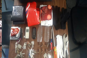 En el registro, los funcionarios policiales del Distrito Eugenio Espejo evidenciaron en poder de Héctor A.F., una maleta tipo portafolio color negro, con ocho llaves de puerta tipo “l”, un par de guantes de color negro, un guante de látex, cuatro llaveros con otras ocho llaves cada uno, un playo de presión, un desarmador plano con mango plástico, una navaja multiuso, ocho fundas grandes de colores negro, rojo, blanco, plomo, varios pedazos de plásticos de botella tipo canaleta y, un celular marca Nokia color blanco con su batería.