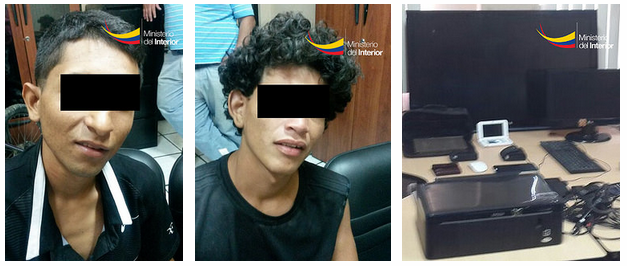 Las operaciones de búsqueda de los presuntos delincuentes comenzaron en los sectores aledaños. A la altura del redondel de la vía Rocafuerte-Crucita, localizaron a Jhon Steven Z.V., quien tenía una maleta y en su interior una computadora portátil, un iPad, un nintendo, un videojuego y un mouse. Todos estos elementos fueron identificados por el propietario.