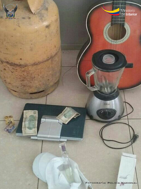 Siguiendo con la persecución se dio alcance al otro sujeto, en el sector La Pradera. El detenido responde a los nombres de Miguel Hemerildo E.T., de 36 años de edad. A él se lo halló con una funda que tenía una licuadora, un perfume, dinero en efectivo, una computadora portátil y una guitarra.