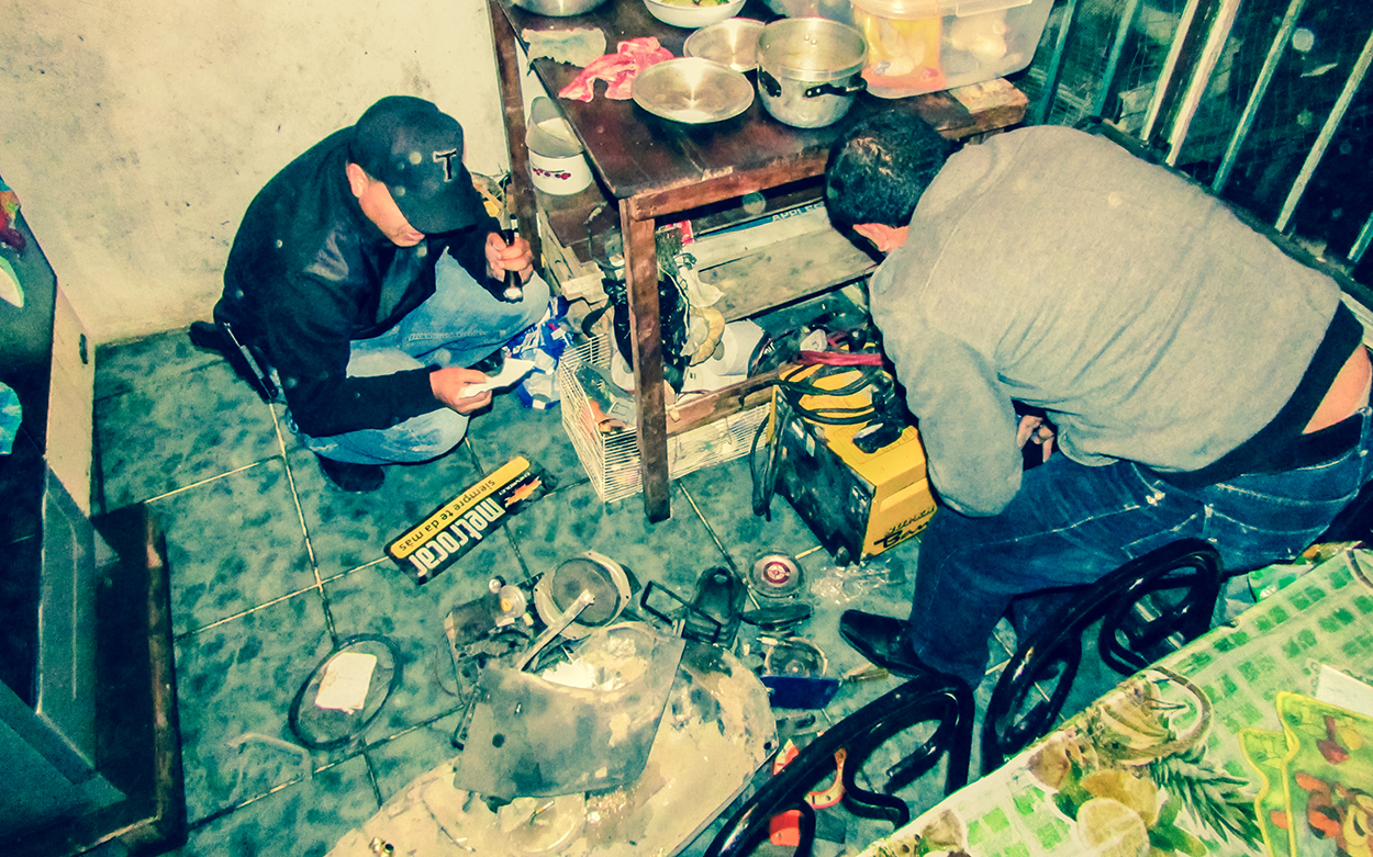 Bajo la mesa de la cocina se encontraron más partes y accesorios de los vehículos.