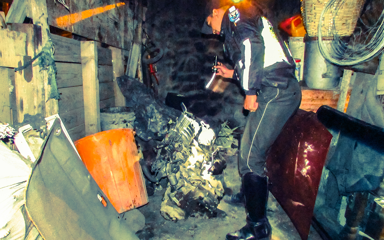 > El motor de un automóvil fue hallado en una especie de bodega.