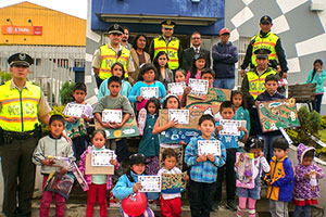 La lluvia y el frío no fueron inconvenientes para que los más pequeños se diviertan.  Al final agradecieron por este acto que fue aprovechado por parte de la Policía, para enseñarles normas de seguridad y prevención que las pueden aplicar en su vida.