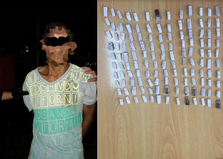 Al llegar al lugar identificaron a Luis G., de 37 años de edad y le encontraron 173 envolturas de papel con 40 gramos de base de cocaína que representan 400 dosis.