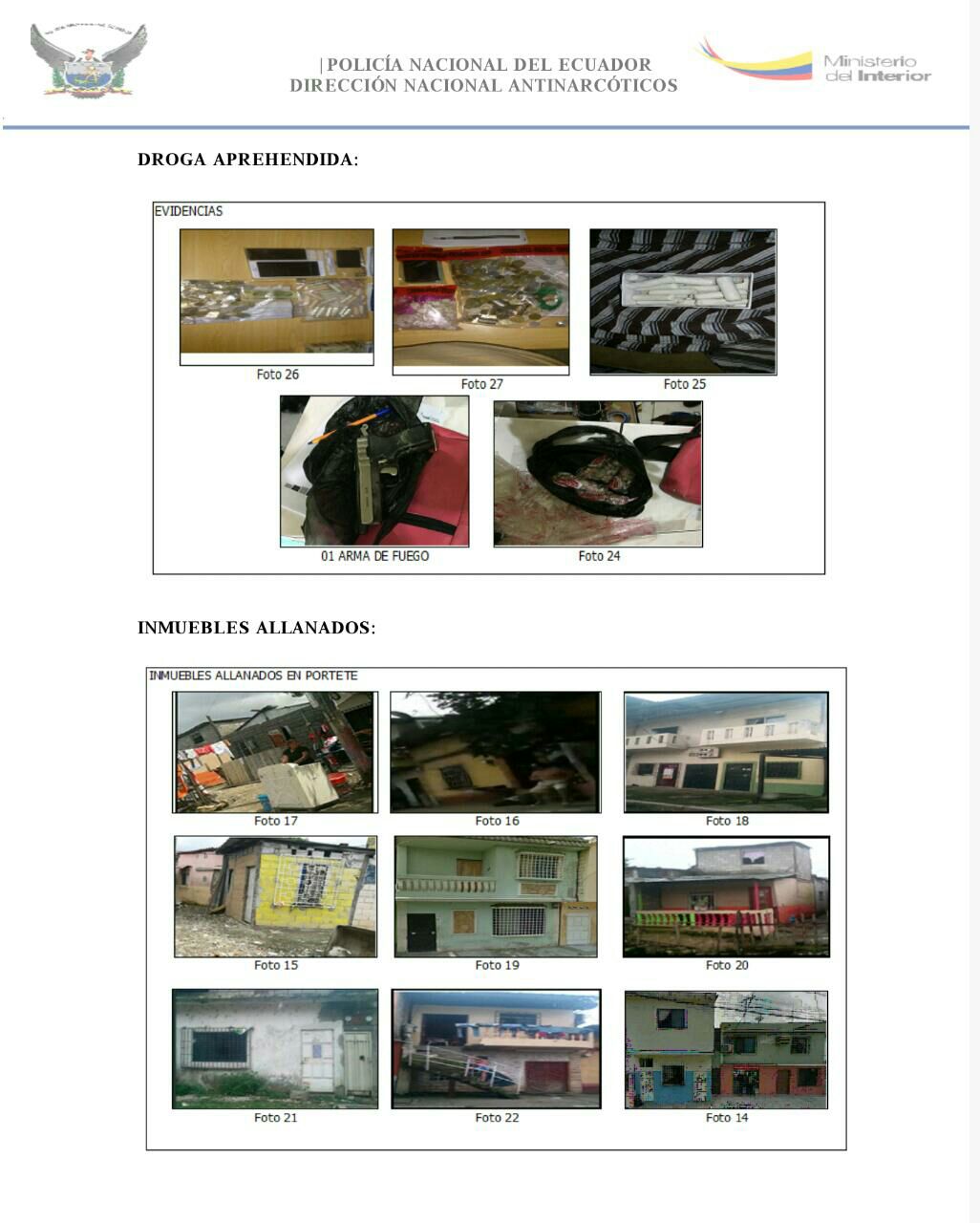 La Policía Nacional de Ecuador, a través de la Unidad Antinarcóticos de la Zona 8 (UAZ-8), en coordinación con la Fiscalía, ejecutó la Investigación denominada “Dinamita”, en la que se detuvo a 11 ciudadanos, quienes tenían 720 gramos de heroína, 24 mil dosis de droga, así como una arma de fuego, dinero en efectivo y otras evidencias. Se realizó el allanamiento de 10 inmuebles.