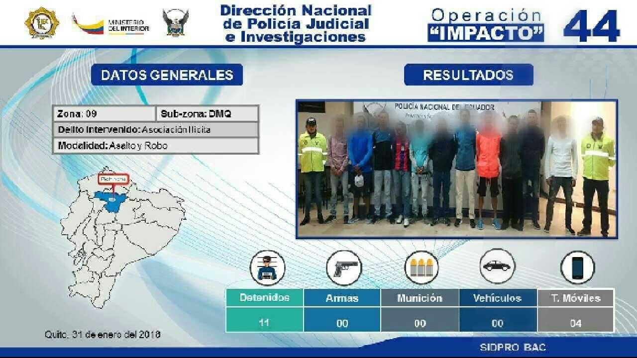 La Sidpro-BAC, en coordinación con Fiscalía y con el apoyo operativo del Grupo de Operaciones Especiales (GOE), Grupo Especial Móvil Antinarcóticos (GEMA) y Criminalística, ejecutó la operación mediante la cual se desarticuló a la red delictiva cuyo modus operandi era abordar buses pretendiendo ser pasajeros o vendedores ambulantes.