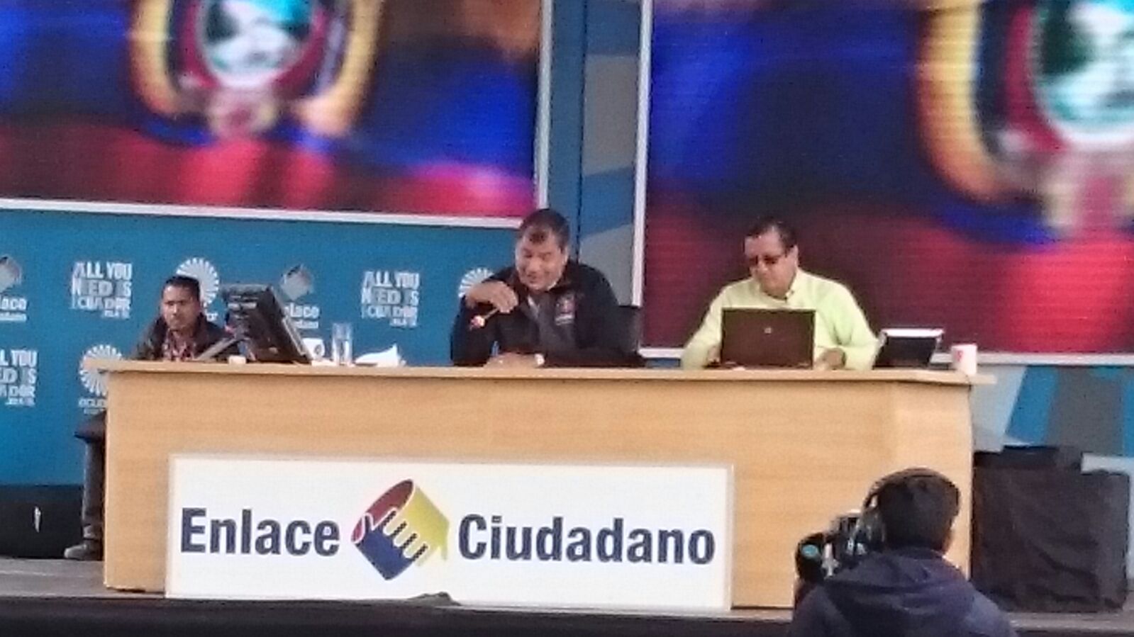 Quito. Rafael Correa, presidente de la República, durante el enlace 445 realizado desde el barrio La Ferroviaria, ubicado al sur de Quito, felicitó al equipo de deportistas policiales que quedó vicecampeón en el primer campeonato mundial de Juegos Policiales, realizado en Bogotá Colombia. En el encuentro deportivo participaron 35 países de América Latina, Europa y Asia.