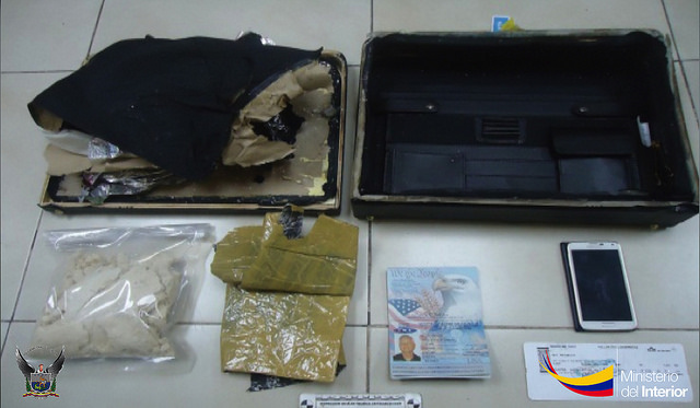 En el Área de Perfiles, de salidas internacionales del aeropuerto, durante el control de rutina a los pasajeros de una aerolínea extranjera, se decomisó, al ciudadano americano Emerson T.W., un portafolio negro con doble fondo, en cuyo interior se encontró 1 kilo de cocaína, dentro de una funda plástica. Con la ayuda de un traductor, se indicó al ciudadano extranjero que sería aprehendido y se dio aviso al Consulado de su país sobre la detención.