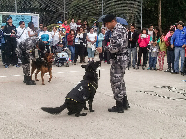 Los niños y adultos disfrutaron de los mensajes de Paquito, de las dinámicas del grupo lúdico de la Policía y de los canes del GOE, que sorprendieron con sus habilidades. Los moradores conocieron la actividad de los canes, cuando los integran en la captura de delincuentes.