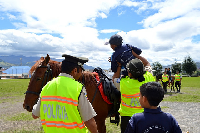 Los estudiantes montaron los caballos de la UER, mientras algunos se hacían pintar el rostro con los agentes de la Dinapen, y otros escuchaban los consejos de Paquito Policía. El capitán Edison Salazar, jefe del circuito Guamaní, fue el impulsador de esta feria de seguridad, para él, la principal motivación es estar con los niños y que sepan que a los policías no se les debe tener miedo porque son sus amigos.