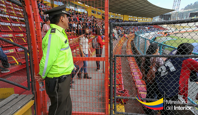Cuenca. Con tranquilidad y sin inconveniente alguno, alrededor de 4 mil personas, entre estudiantes, profesores y padres de familia, disfrutaron de la final del fútbol intercolegial en el estadio Alejandro Serrano Aguilar. La presencia de la Policía Nacional garantizó la seguridad del espectáculo.
