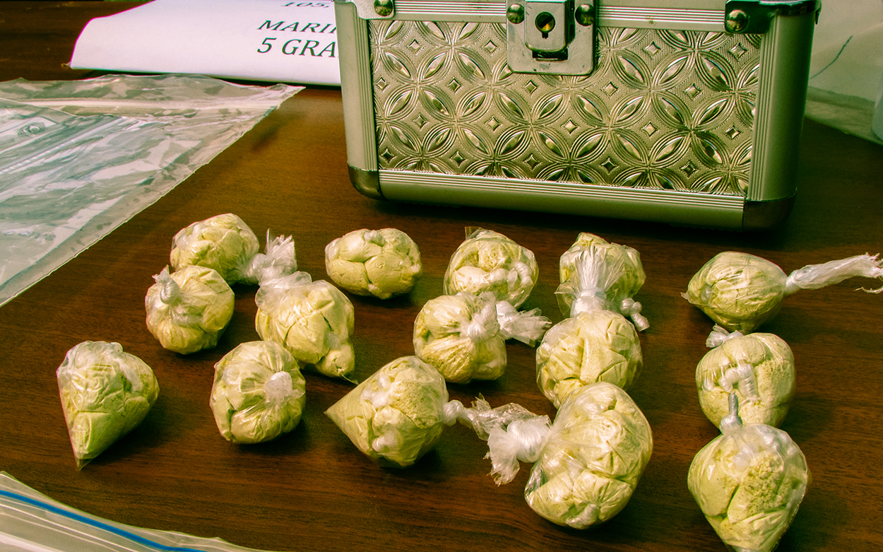 La mujer fue registrada y encontraron entre sus pertenencias 105.9 gramos de cocaína y cinco gramos de marihuana, la cual está valorada en aproximadamente 1.600 dólares. A más de la droga, la detenida tenía en su poder la cantidad de 60 dólares.