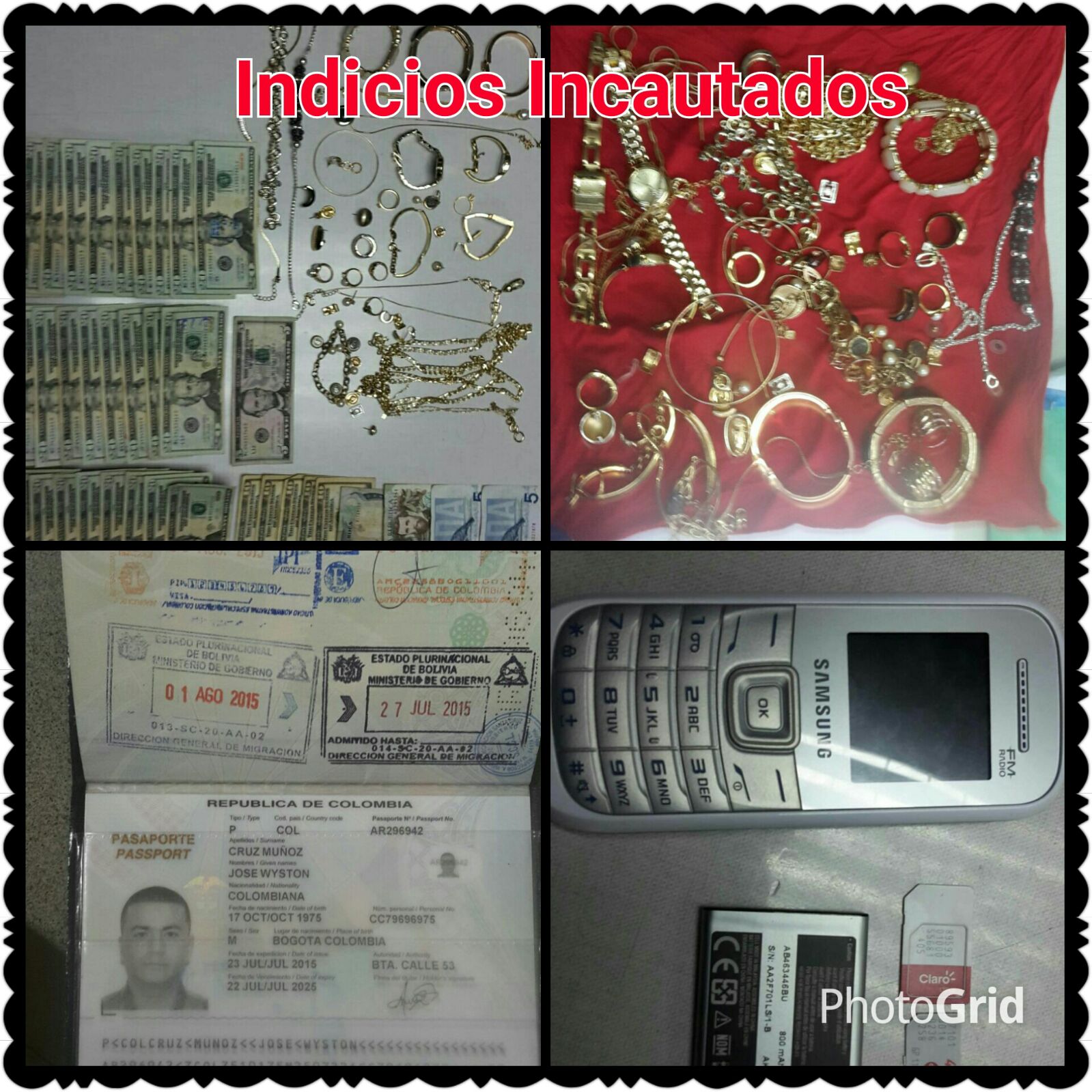 Como indicios del delito que se investiga se encuentra: un lote de joyas de metal, color amarillo de un monto aproximado de 10 mil dólares. 575 dólares en efectivo, un teléfono celular y varios documentos. Redacción M. C. /Quito.