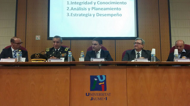 Minutos antes de la firma del acuerdo, el Ministro Serrano realizó una exposición en la temática de La Seguridad Ciudadana aplicada desde el Buen Vivir en el auditorio de la Universidad Jaime I, frente a las autoridades y profesores del alma máter española, junto con la delegación policial ecuatoriana.