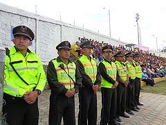 “El operativo inició en los exteriores del escenario, efectuando el control respectivo para que los aficionados no ingresen con objetos que representen un riesgo para los asistentes, de igual modo se impidió la venta de licor y de esta manera los espectadores disfrutaron de compromiso deportivo con toda la tranquilidad necesaria”, indicó Tobar.