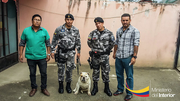 Cuenca.- El trabajo de los elementos especiales de la Policía Nacional va más allá de su propio deber, un ejemplo de ello es la acción emprendida por los comandos del Grupo de Operaciones Especiales (GOE), quienes recataron a un perro de raza Bulldog inglés, que era agredido por otros canes.