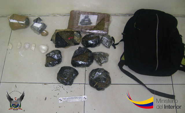 Al momento de la detención y al realizar el registro de sus pertenencias, se encontró en su mochila 1.8 kilos de marihuana y 821 gramos de cocaína. Gracias a estos indicios se lo halló en delito flagrante, por lo que la Fiscalía ordenó su detención.
